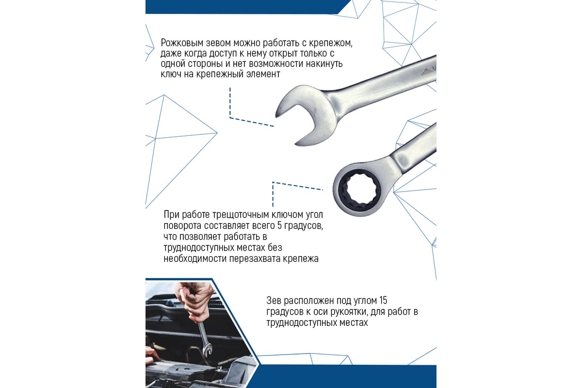 КЛЮЧ гаечный 17 мм комбинированный трещоточный CrV VERTEXTOOLS