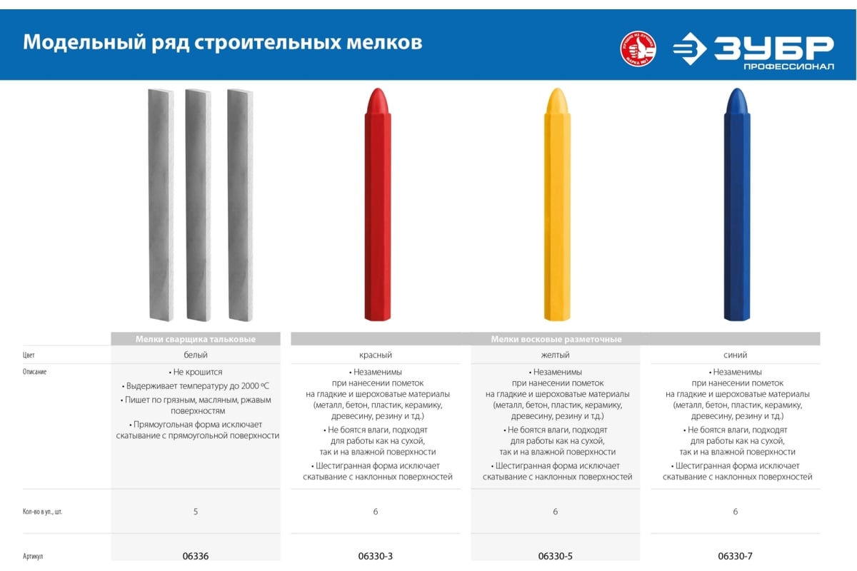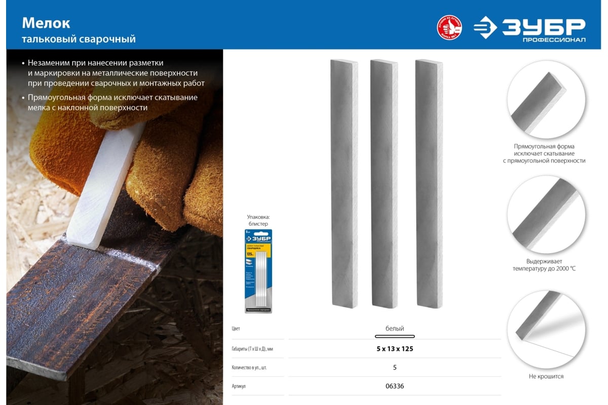 МЕЛОК разметочный тальковый для сварщика 5 шт ЗУБР