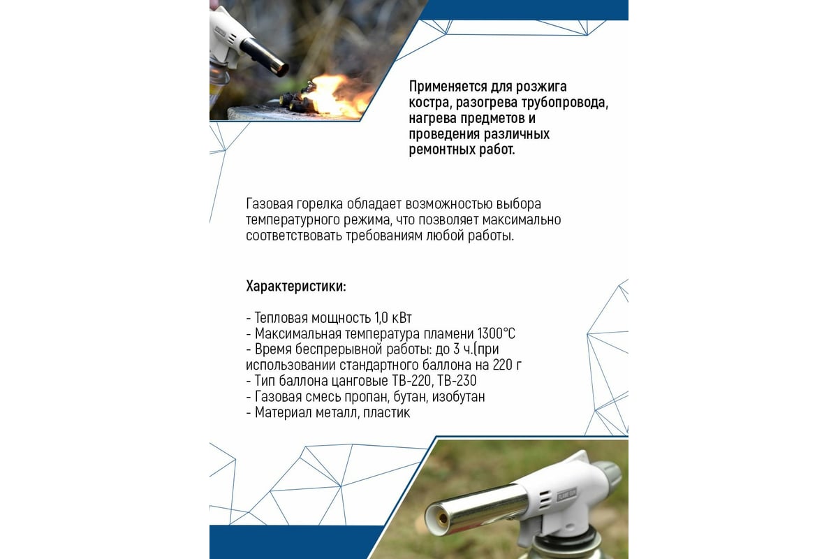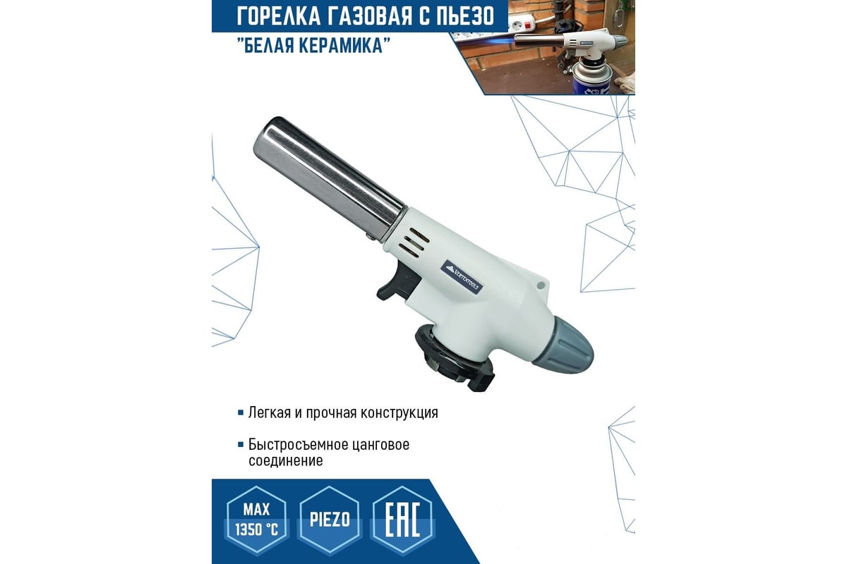 ГОРЕЛКА-насадка газовая 1350°C с пьезоподжигом Белая Керамика VERTEXTOOLS