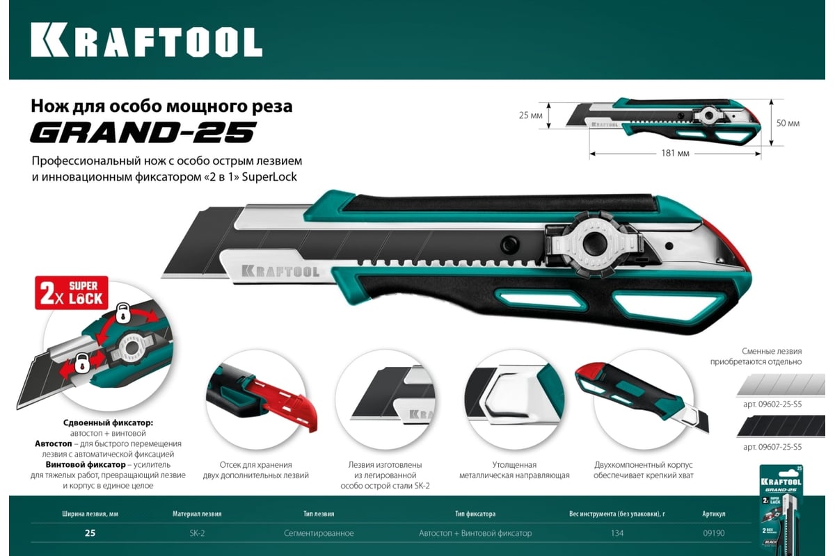 НОЖ технический 25 мм сегментированные лезвия Grand-25 KRAFTOOL