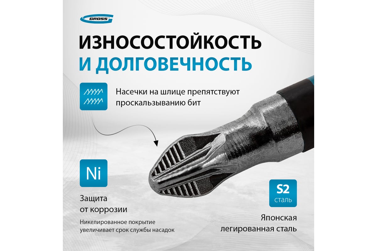 БИТА PZ2 90 мм магнитная с насечкой Е1/4" GROSS