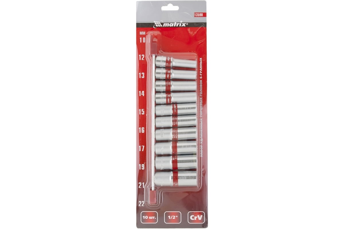 НАБОР головок торцевых 1/2" (10-22 мм) удлиненных (10 шт.) MATRIX