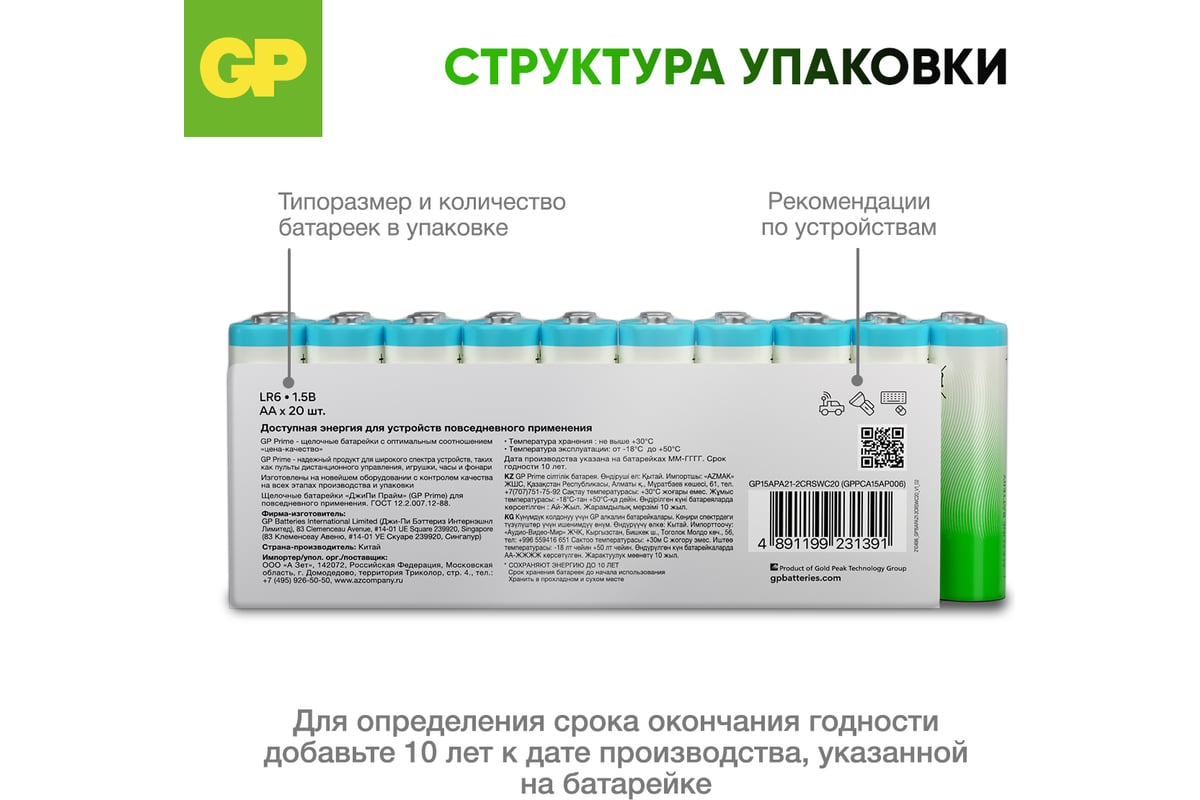БАТАРЕЙКА AA 1,5 В алкалиновая 15 А LR6 Super Alkaline GP