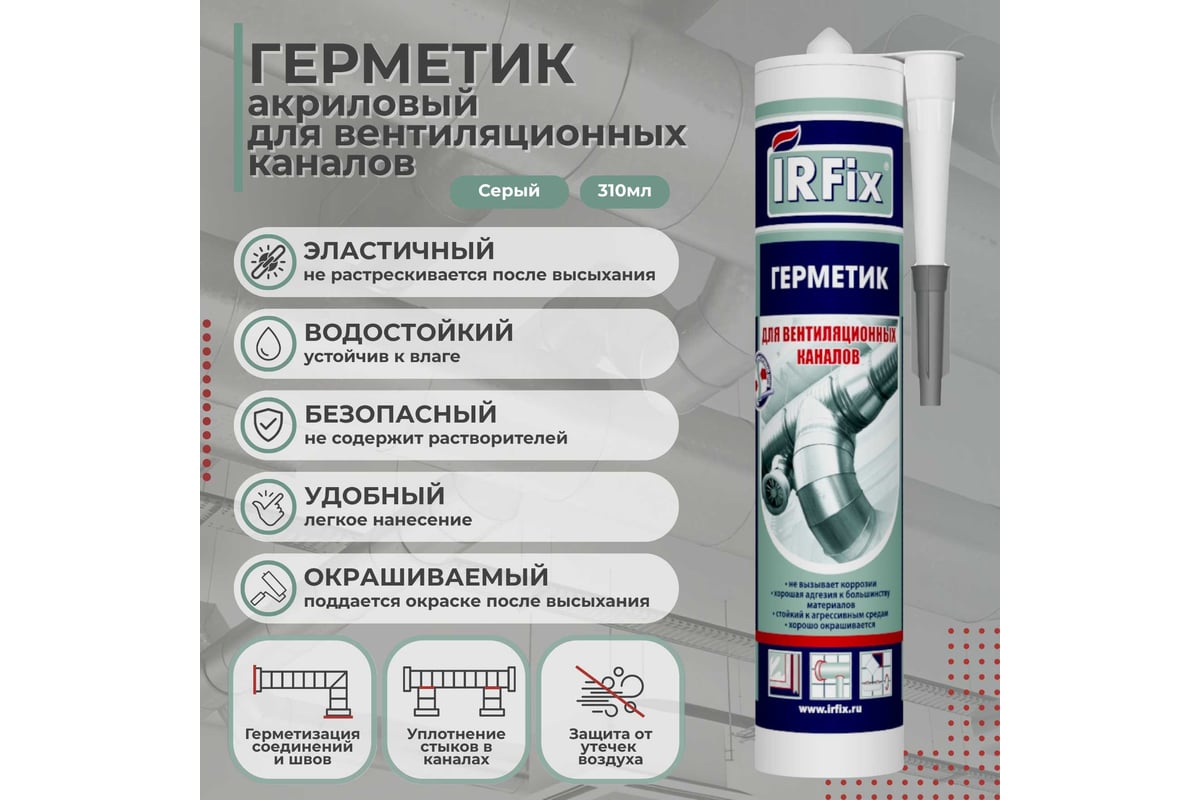 ГЕРМЕТИК акриловый для вентиляционных каналов водостойкий 310 мл IRFIX цв. серый
