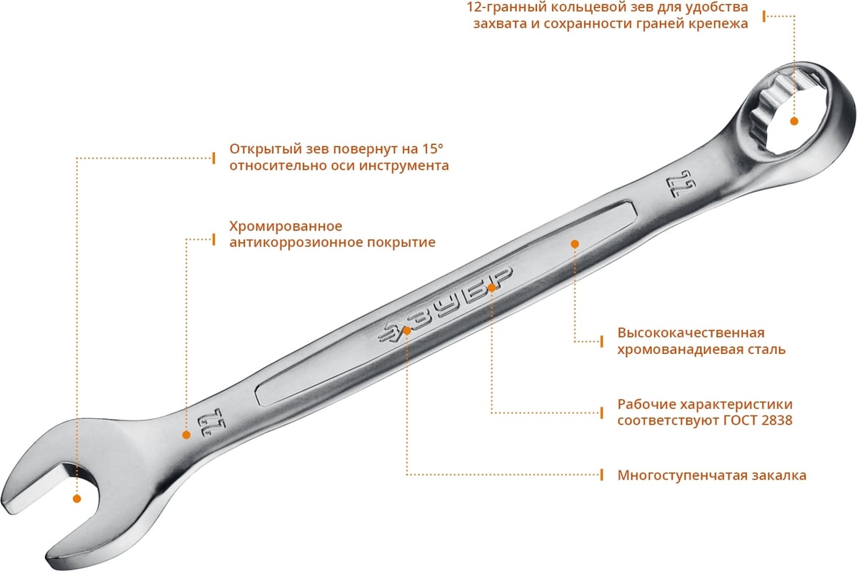 КЛЮЧ гаечный 22 мм комбинированный CrV ЗУБР