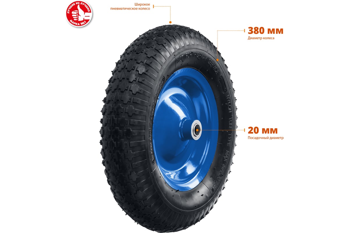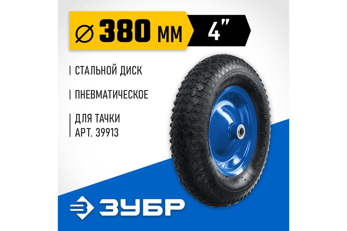 КОЛЕСО для тачки 4,80/4,00-8" 380 мм пневматическое с подшипником 20 мм КПВ-2 ЗУБР