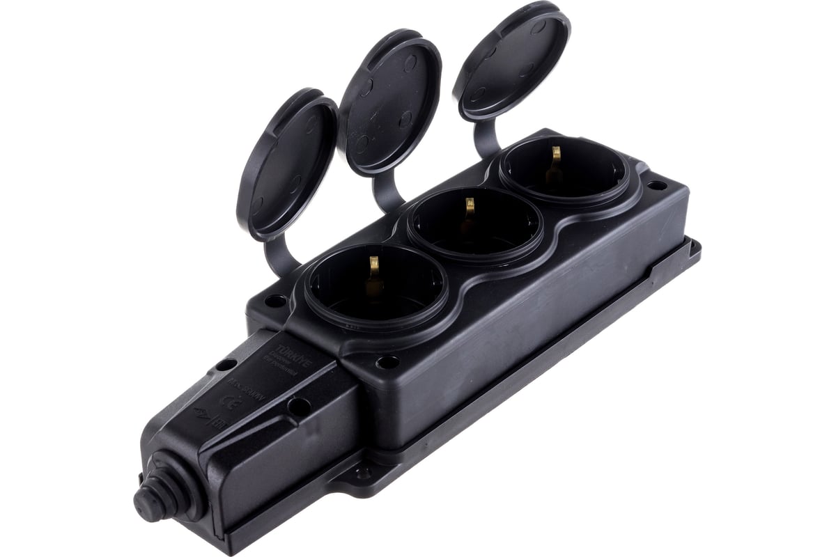 РОЗЕТКА переносная 3-местная 16 А 250 В с/з с крышками каучук IP54 NE-AD