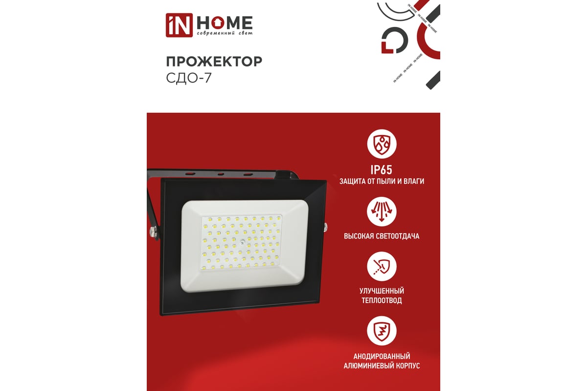ПРОЖЕКТОР LED 100 Вт 6500 К 8000 Лм IP65 СДО-7 IN HOME холодный белый