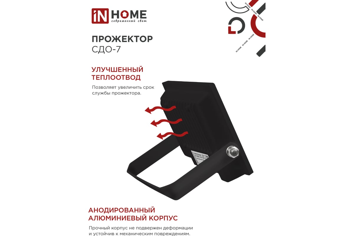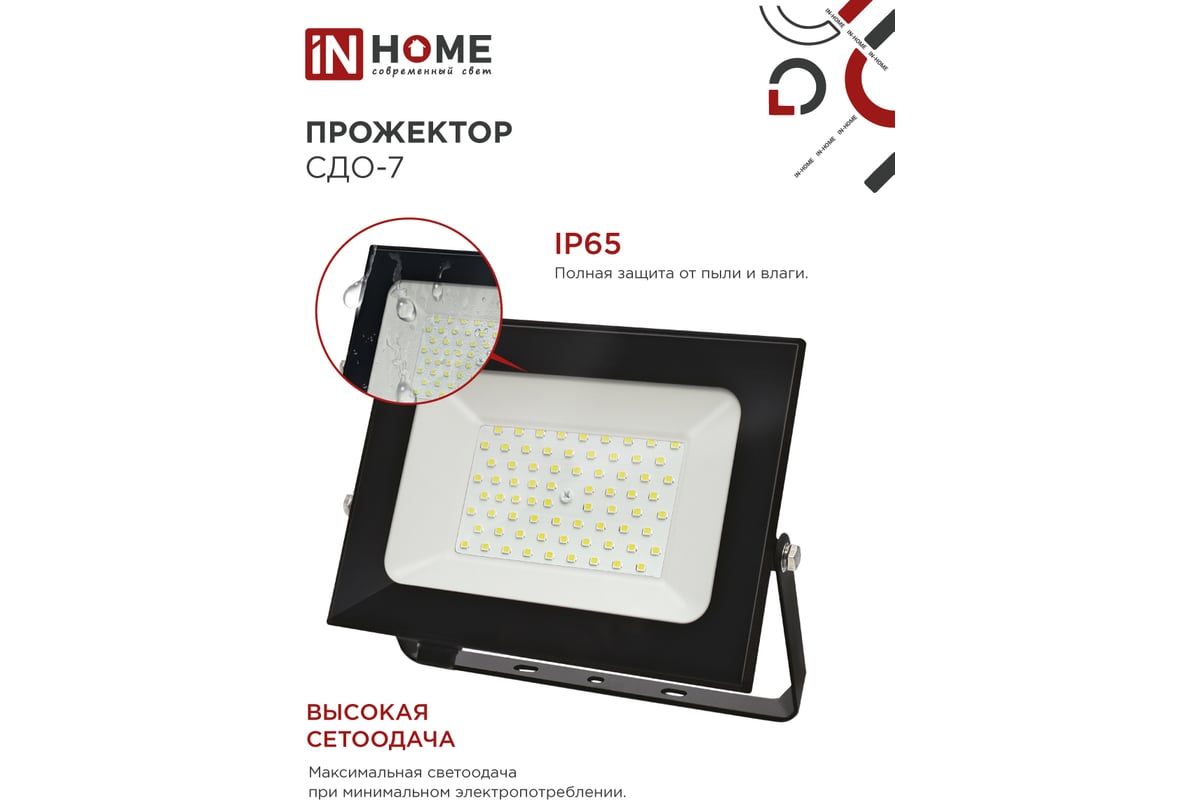 ПРОЖЕКТОР LED 50 Вт 6500 К 4000 Лм IP65 СДО-7 IN HOME холодный белый