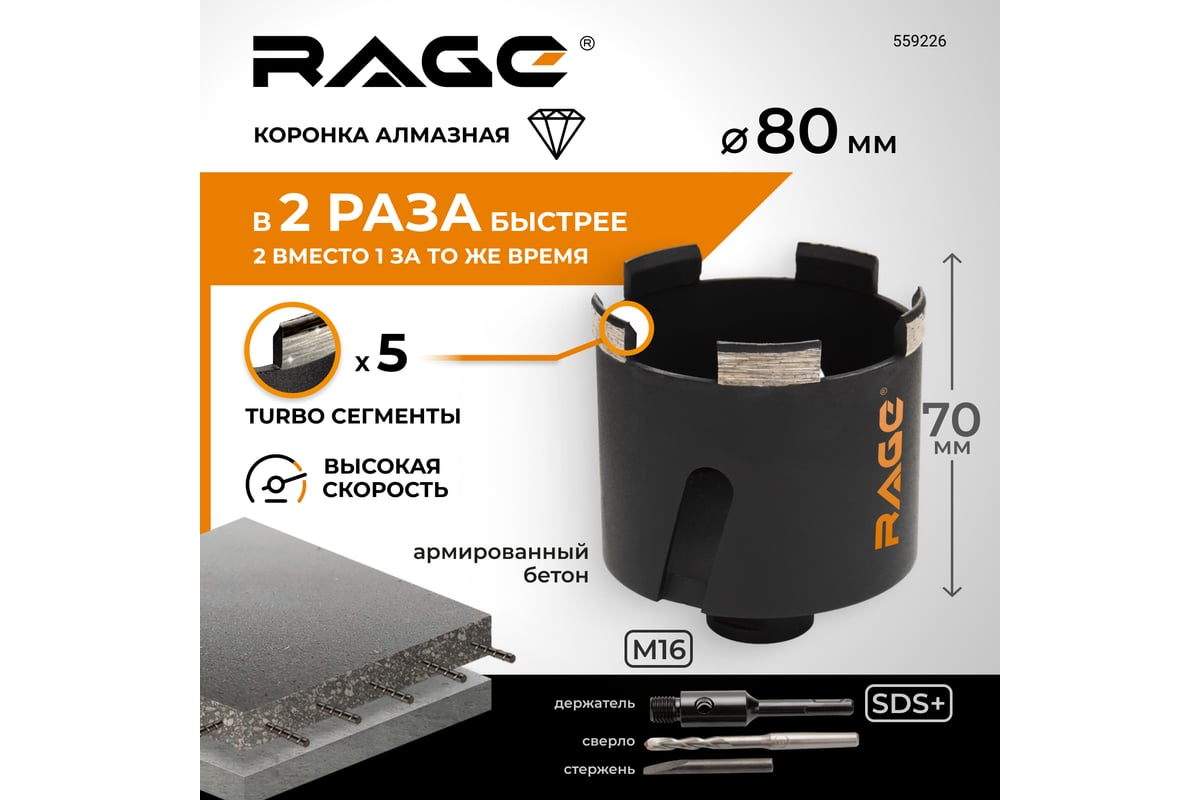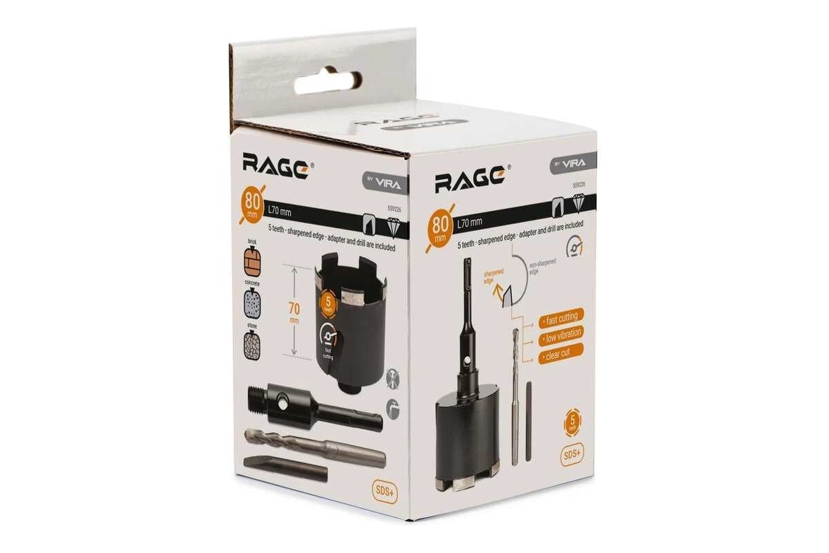 КОРОНКА алмазная 70 мм D80 мм по бетону с центрирующим сверлом SDS-plus by VIRA RAGE
