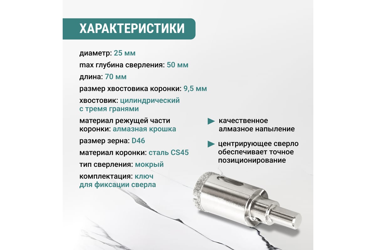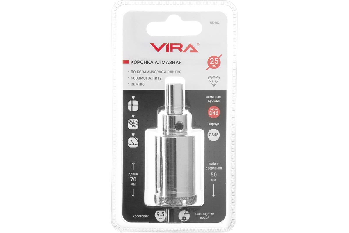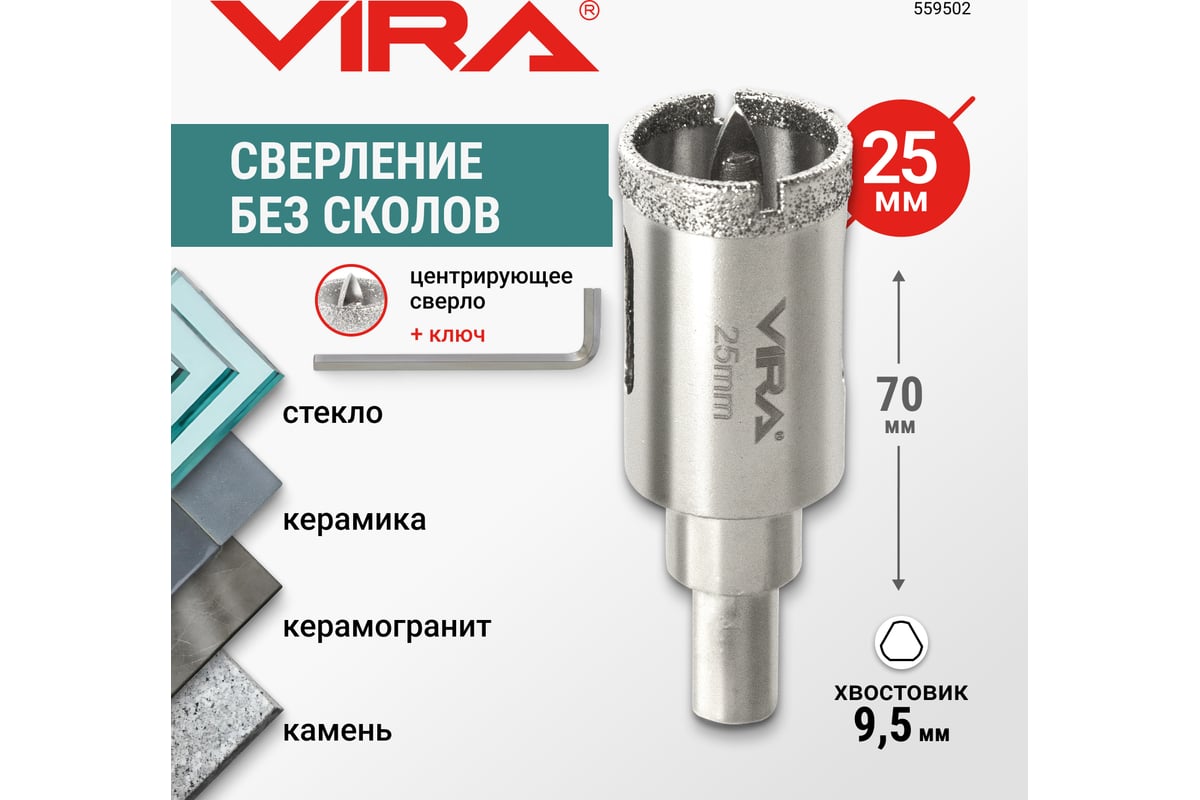 КОРОНКА алмазная 25х50 мм по керамике с центрирующим сверлом 3-гранный цилиндр VIRA