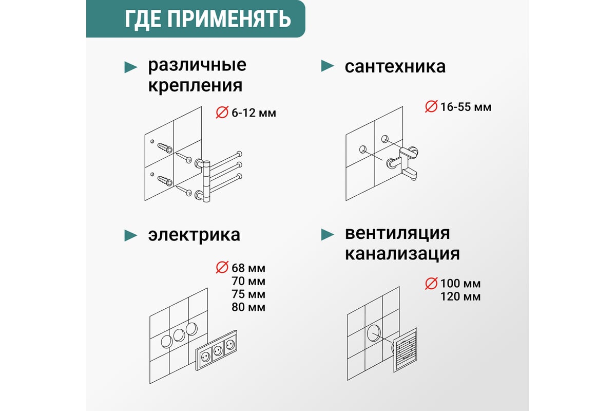 КОРОНКА алмазная 55х55 мм по керамике и стеклу с центрирующим сверлом цилиндр VERTEXTOOLS