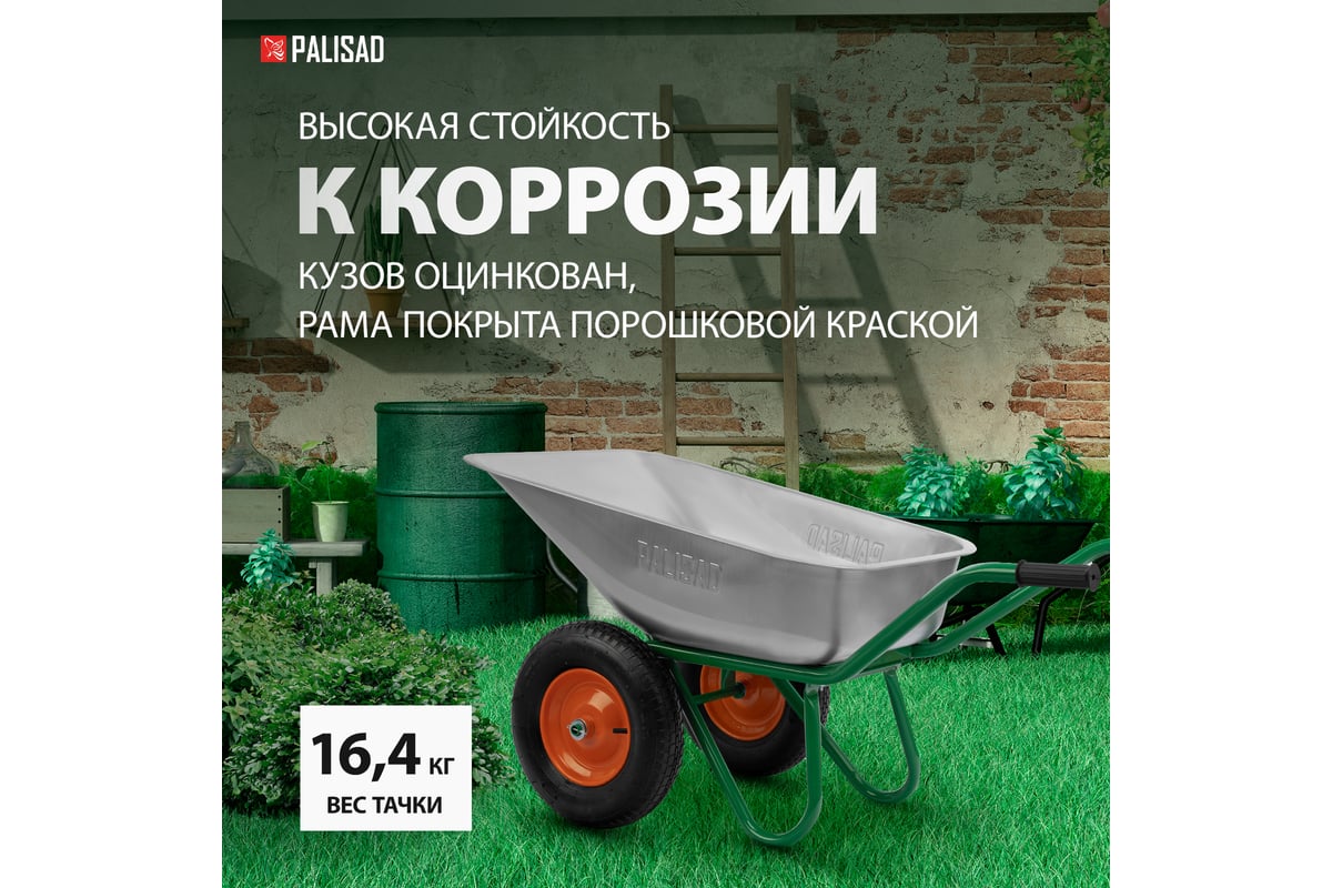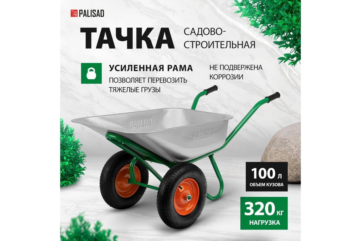 ТАЧКА строительная 100 л 320 кг двухколесная усиленная оцинкованная PALISAD