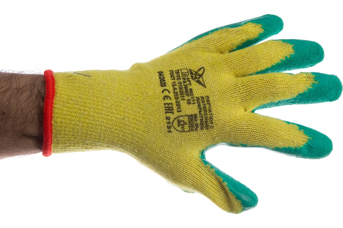 ПЕРЧАТКИ полиэфирные 11 класс рифленое латексное покрытие р. XL цв. оранжевый с желтым