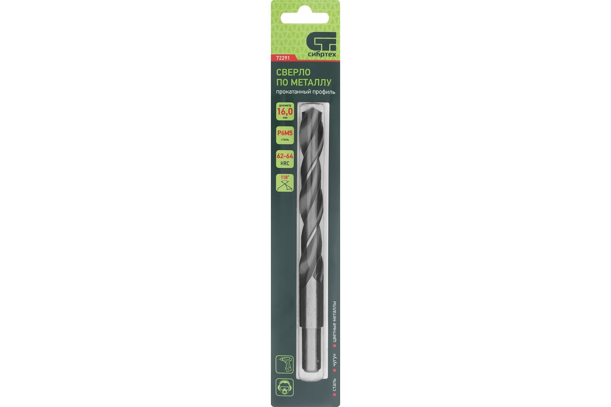 СВЕРЛО спиральное 16,0х120х178 мм по металлу P6M5 цилиндр СИБРТЕХ