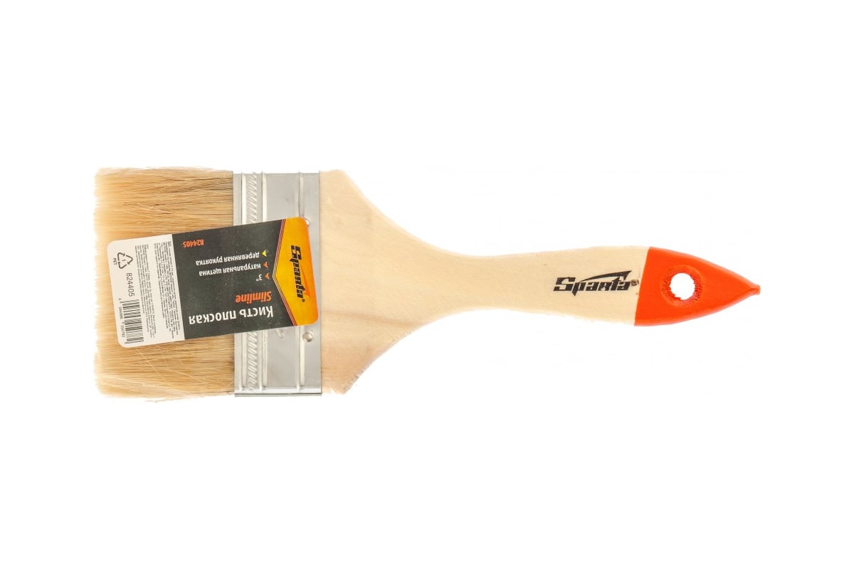 КИСТЬ флейцевая 75 мм натуральная щетина деревянная ручка Slimline SPARTA