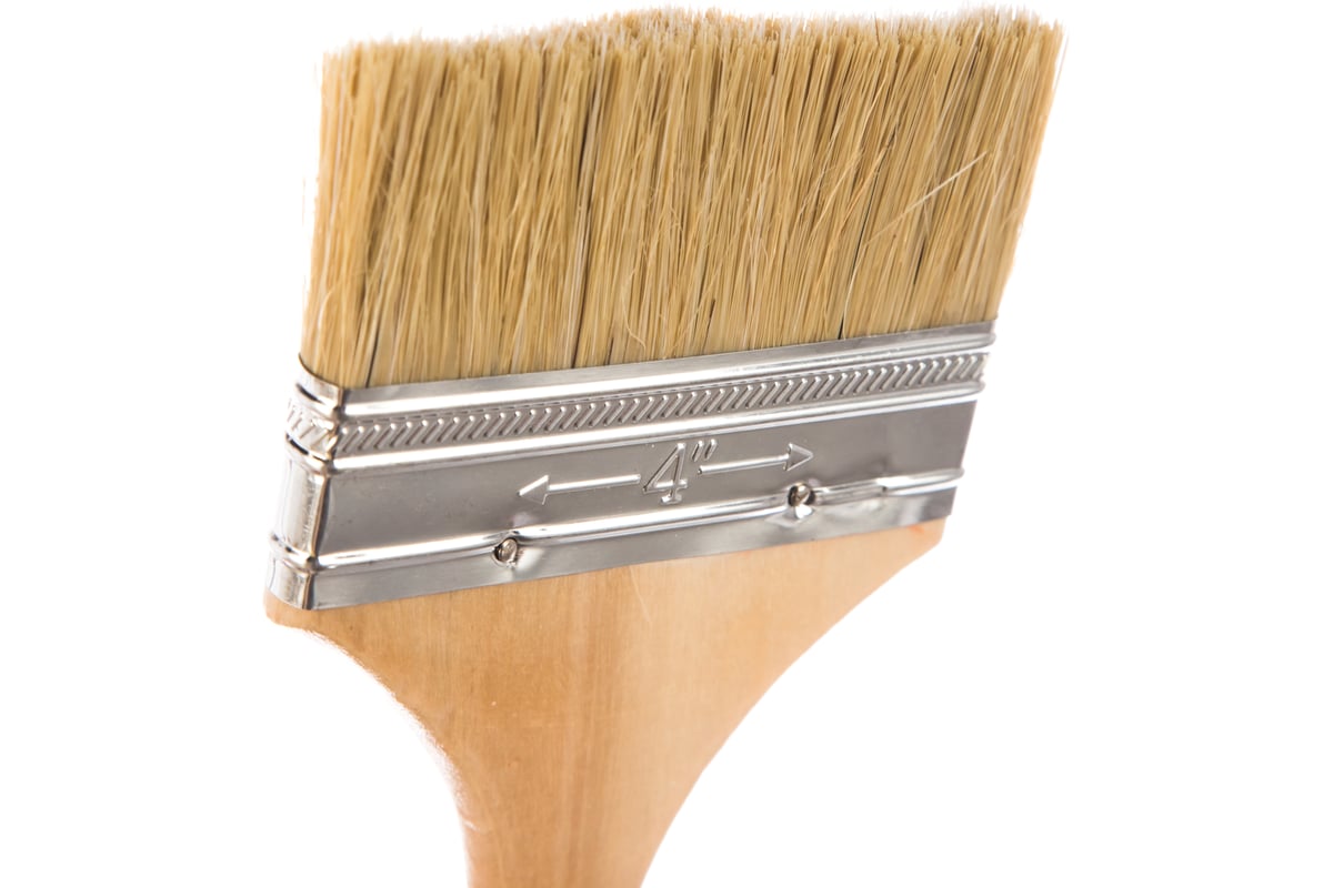 КИСТЬ флейцевая 100мм натуральная щетина светлая деревянная ручка РЕМОКОЛОР