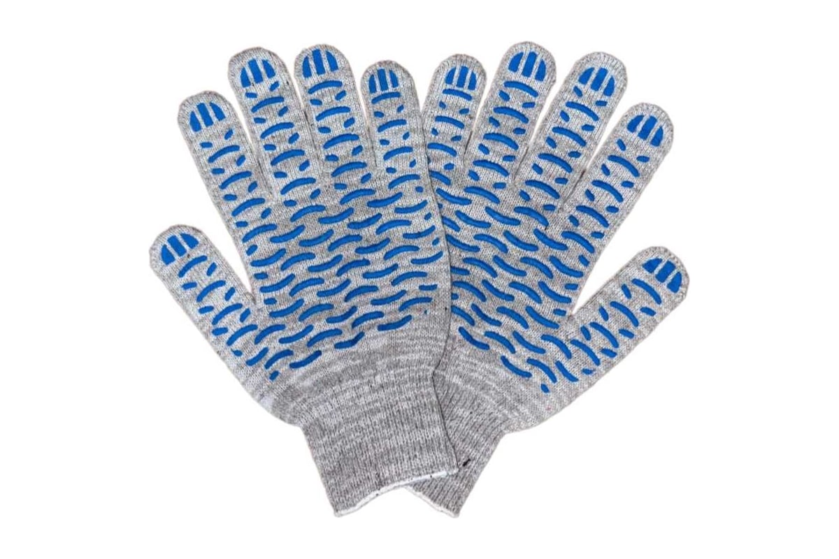 ПЕРЧАТКИ хлопчатобумажные с ПВХ 5-ниточные 10 класс волна цв. серый