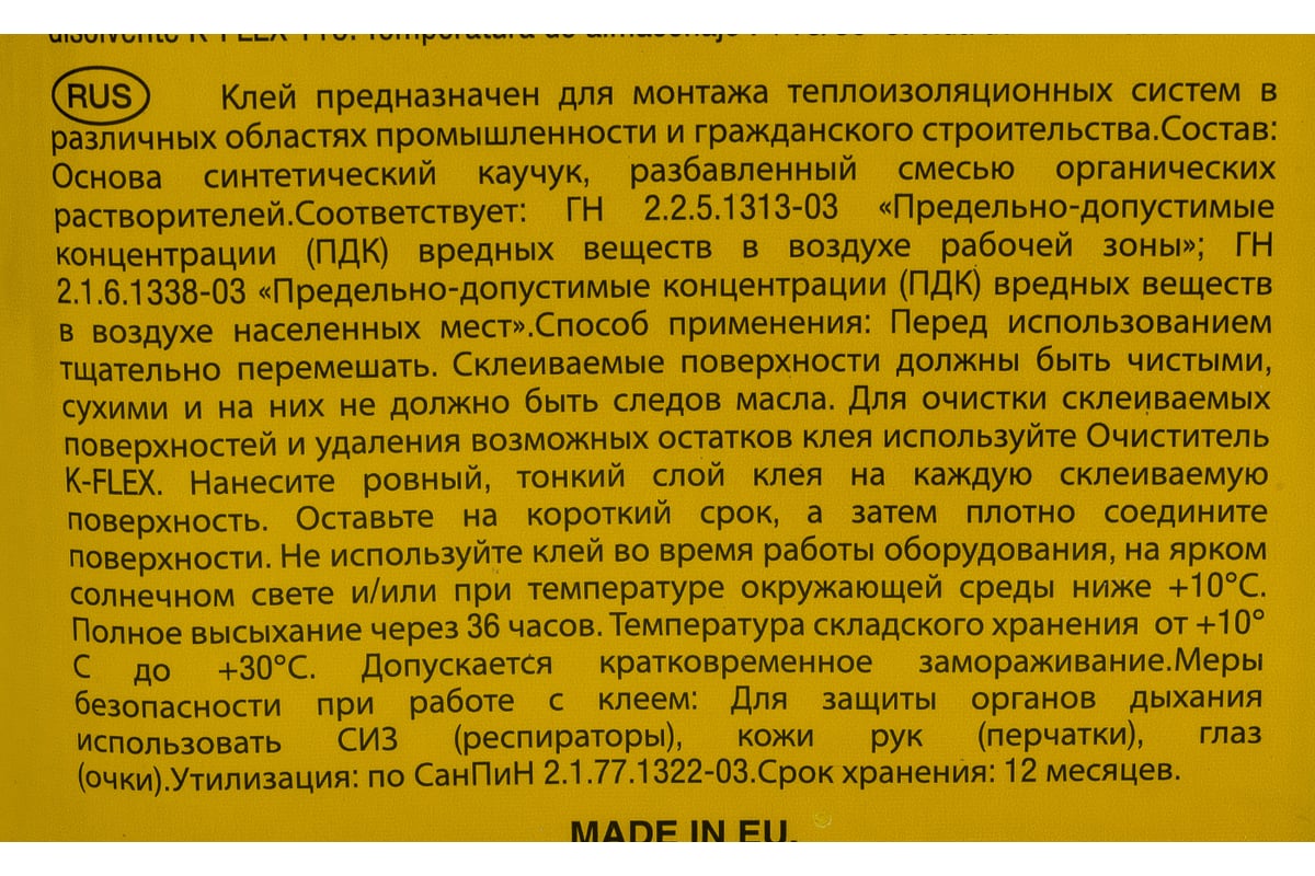 КЛЕЙ каучуковый для теплоизоляции 0,8 л К 404 K-FLEX цв. желтый
