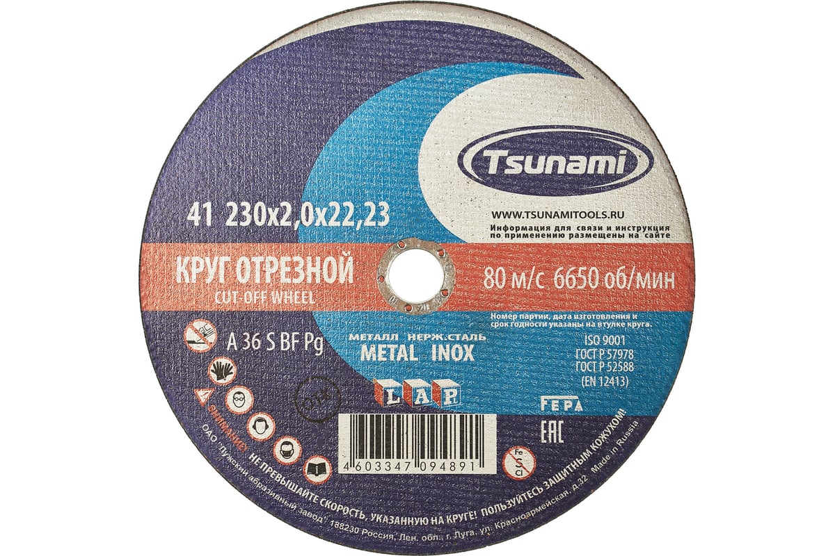 ДИСК отрезной 230х2,0х22,23 мм по металлу TSUNAMI