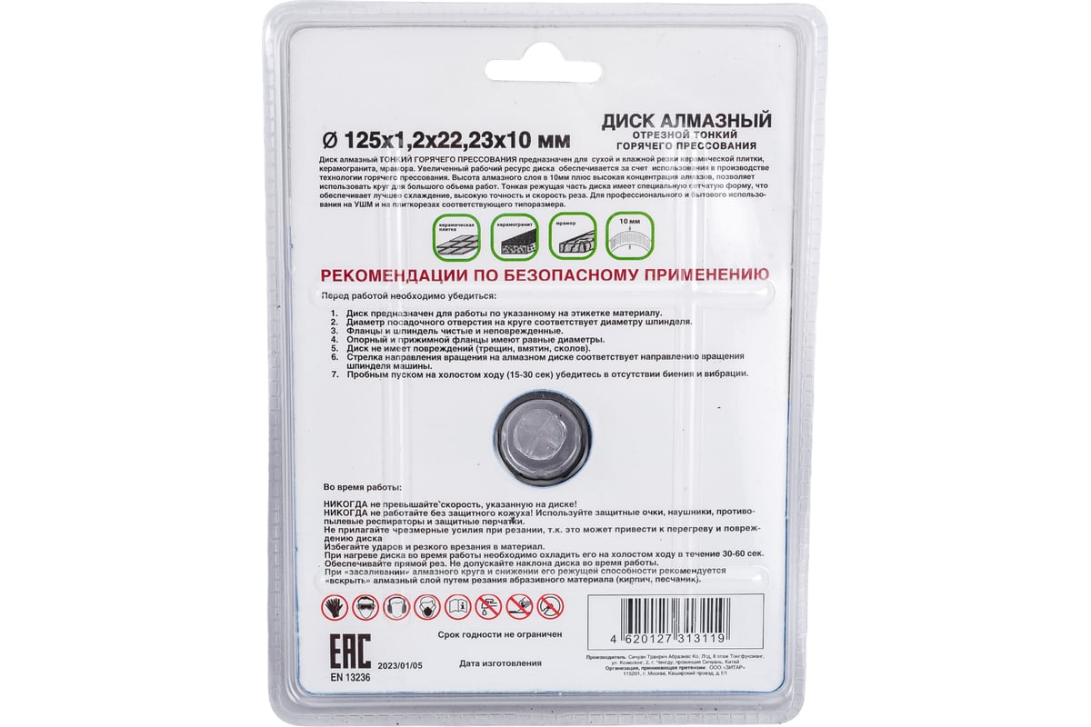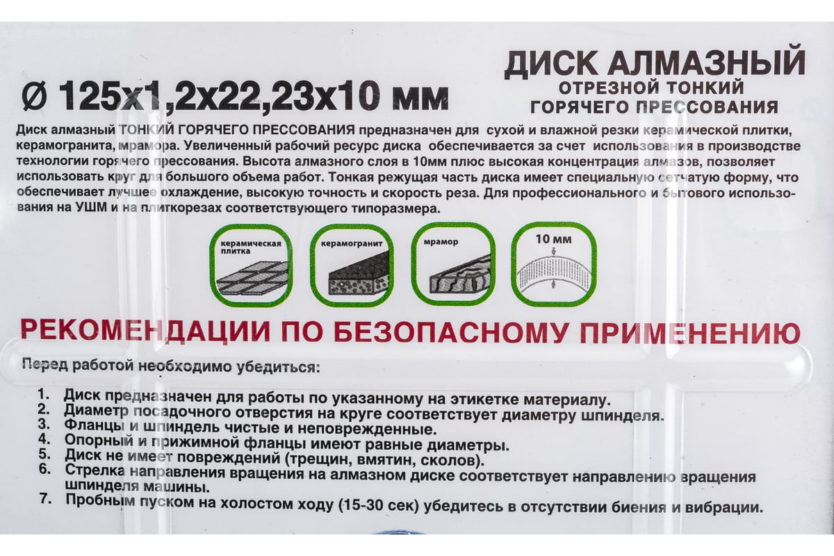 ДИСК алмазный 125х1,2х22,2 мм по керамограниту сплошной турбо TSUNAMI