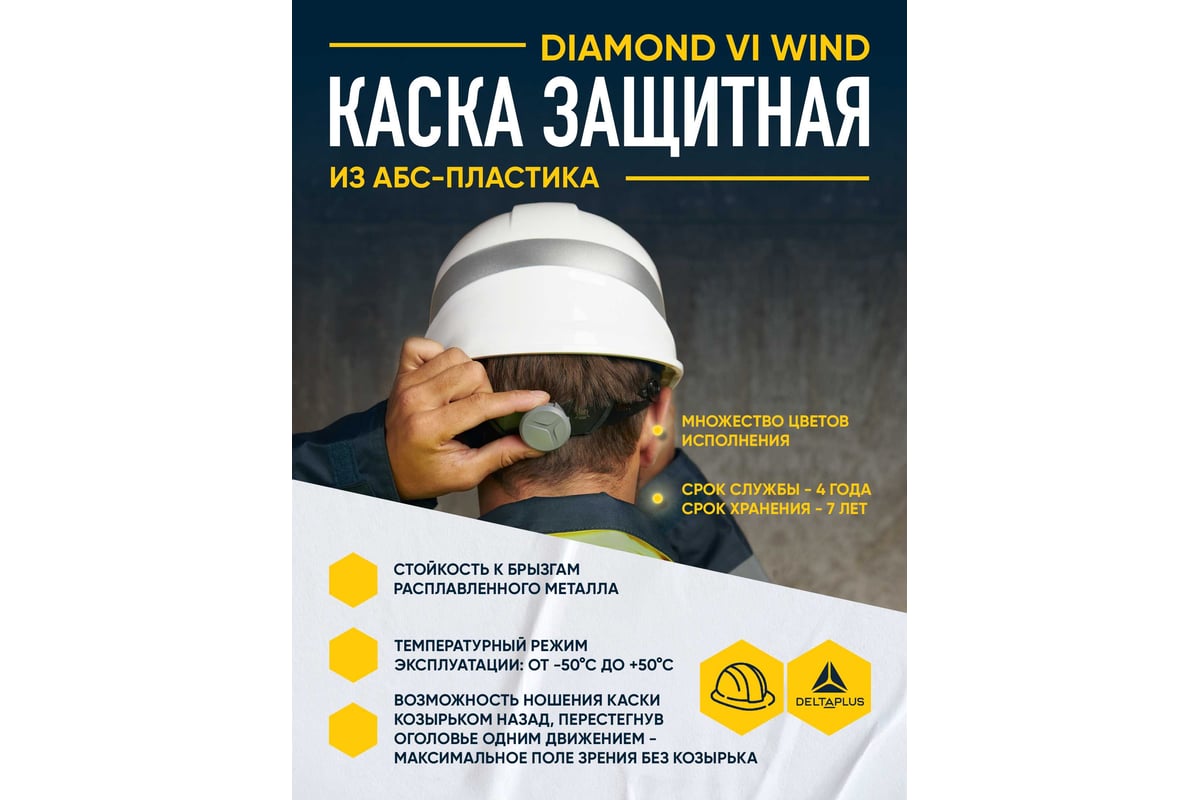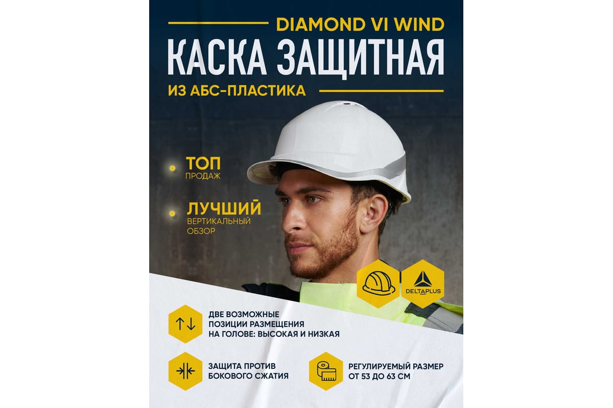 КАСКА защитная с вентиляцией и козырьком АБС-пластик DIAMOND VI WIND DELTA PLUS цв. белый