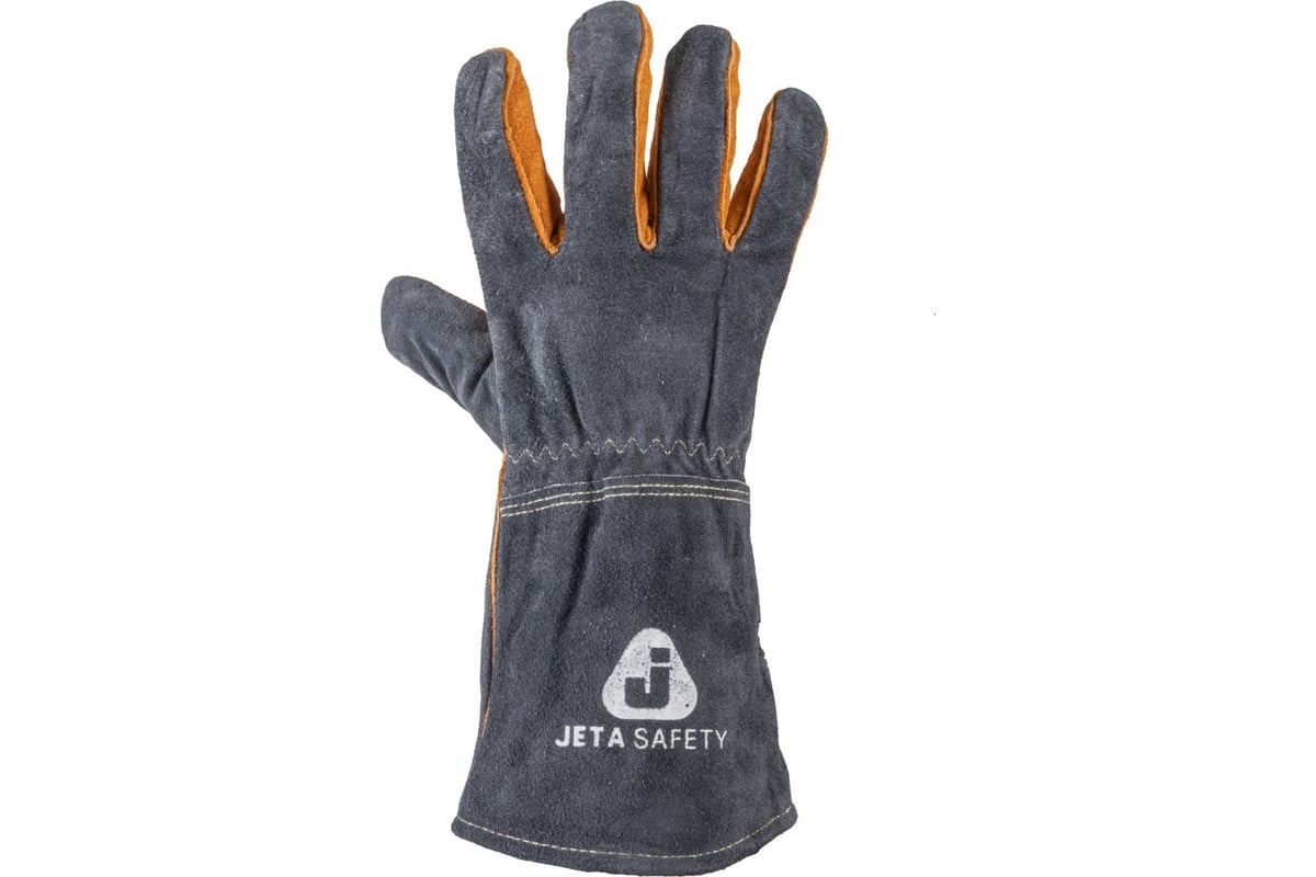 КРАГИ сварщика пятипалые спилок с подкладом Ferrus Comfort JETA SAFETY цв. серый/оранжевый