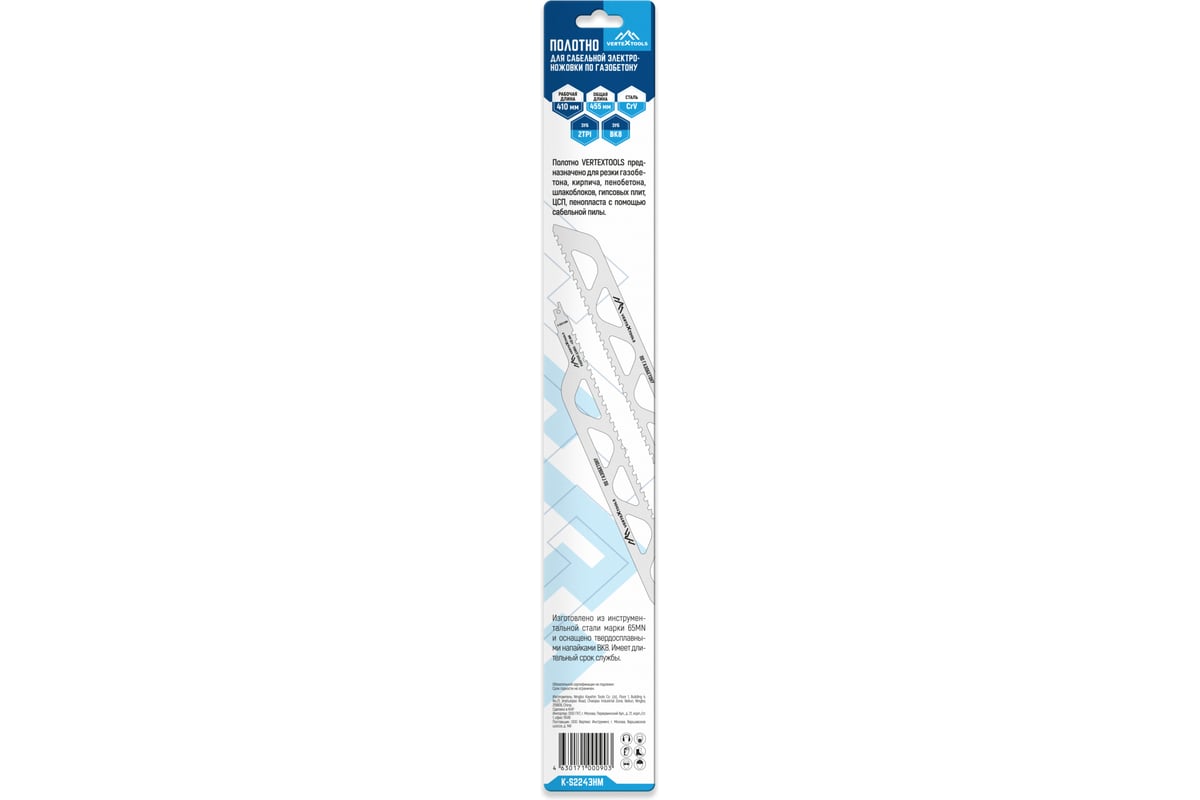 ПОЛОТНО для пилы сабельной 455 мм по газобетону K-S2243HM VERTEXTOOLS