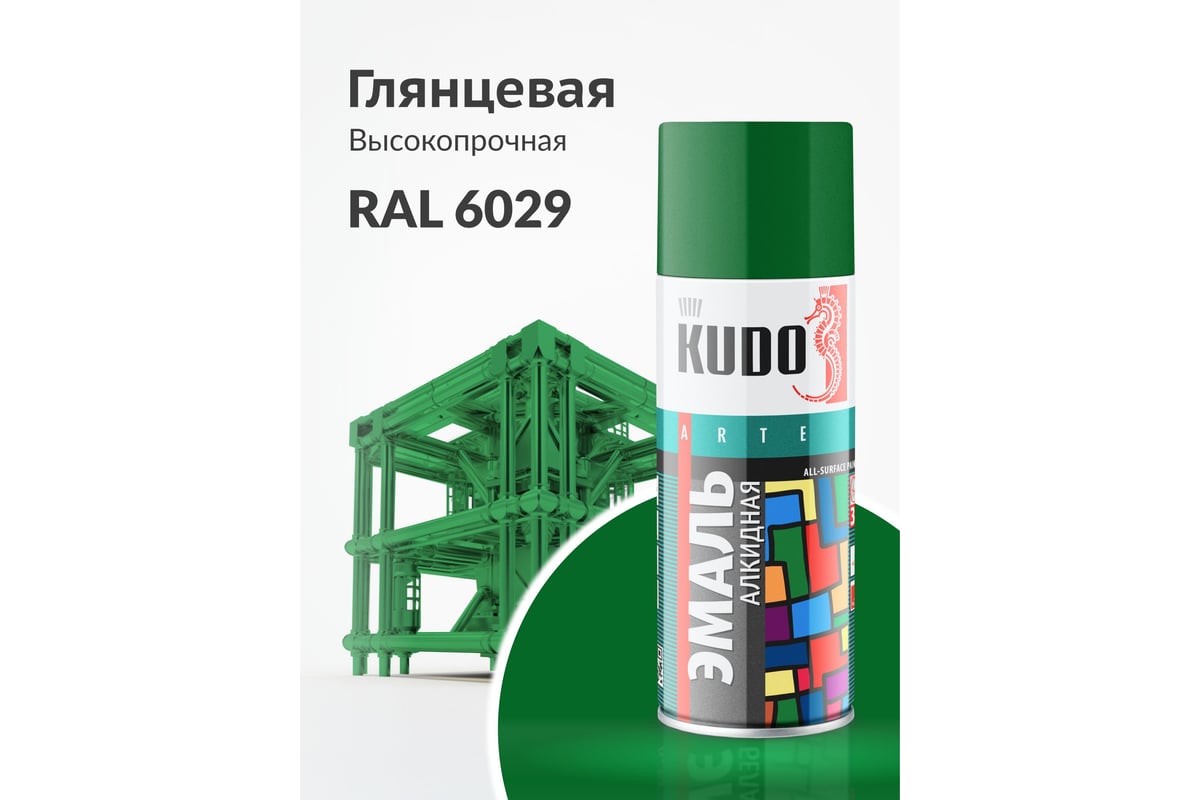 ЭМАЛЬ аэрозольная алкидная глянцевая 520 мл KUDO RAL 6029 цв. зеленый