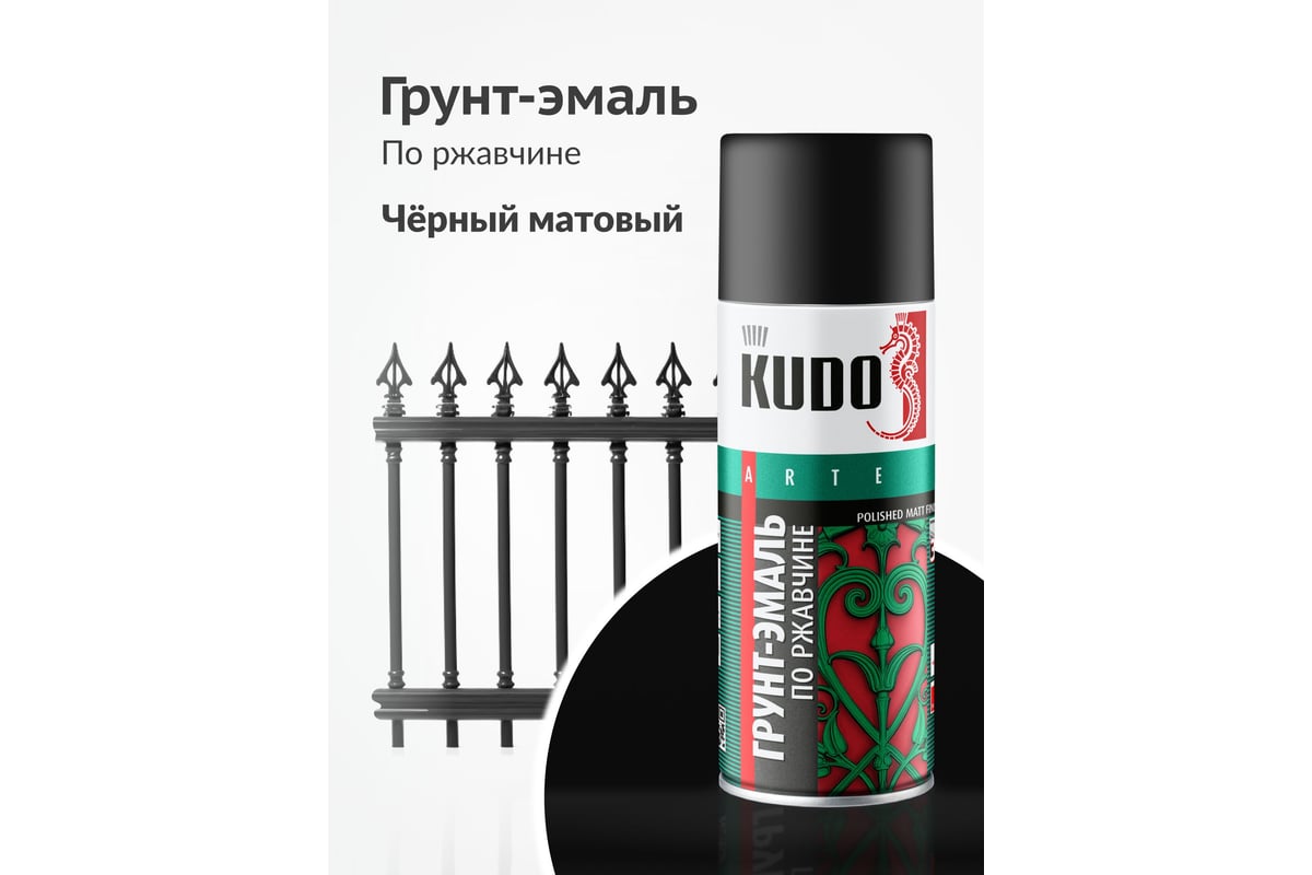 ГРУНТ-ЭМАЛЬ аэрозольная по ржавчине матовая 520 мл KUDO цв. черный