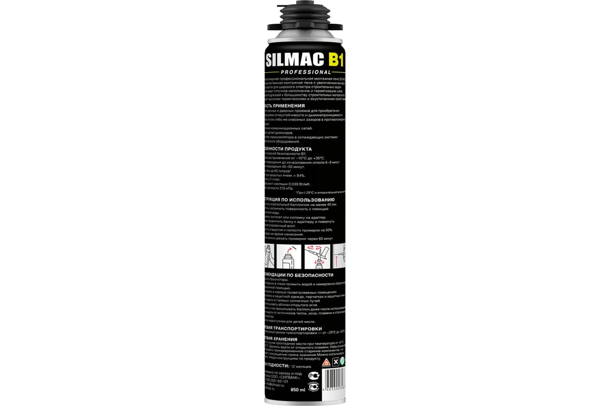 ПЕНА монтажная противопожарная 850 мл SILMAC PROFESSIONAL B1