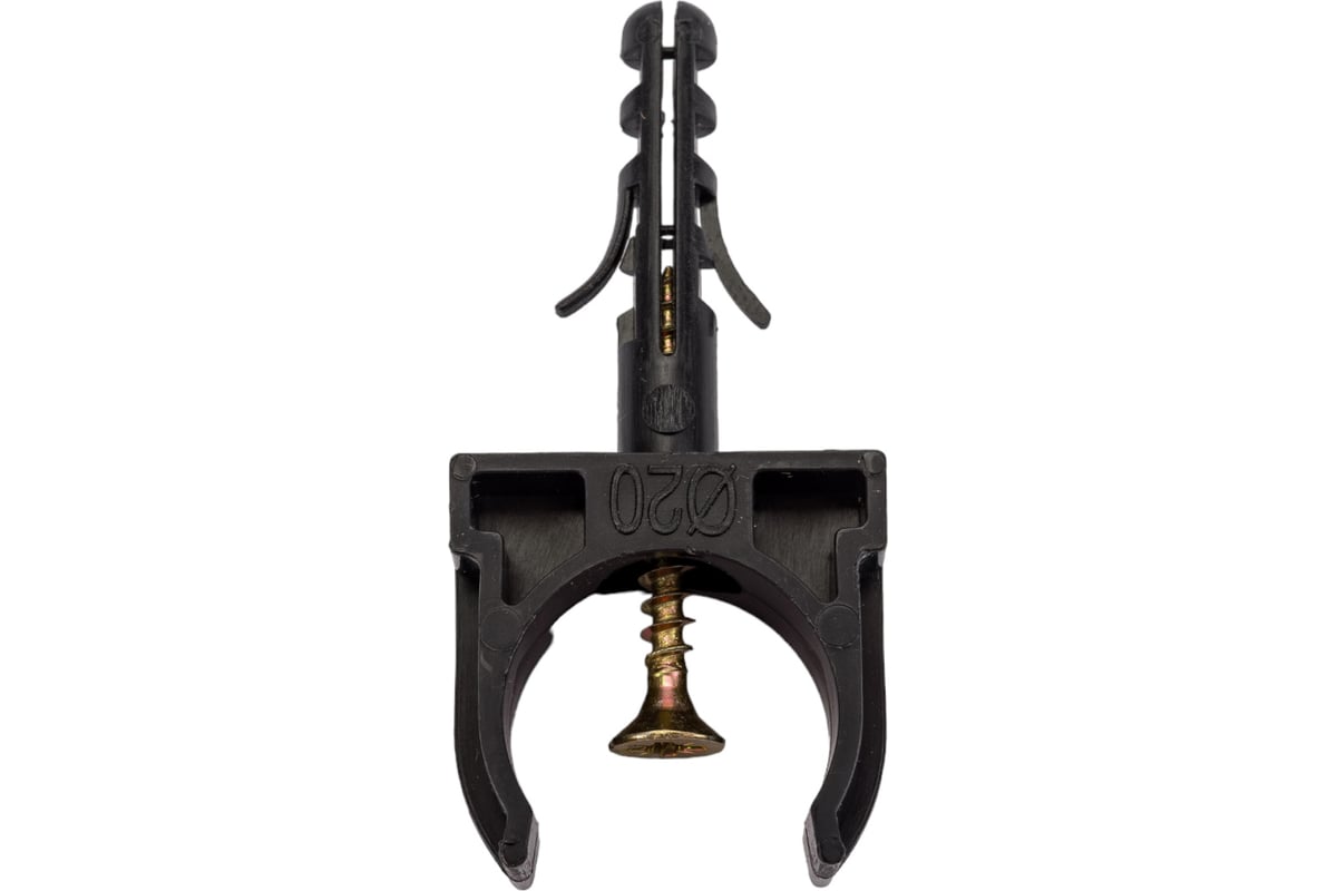 ДЕРЖАТЕЛЬ для труб D20 мм с дюбелем и саморезом ПРОМРУКАВ цв. черный