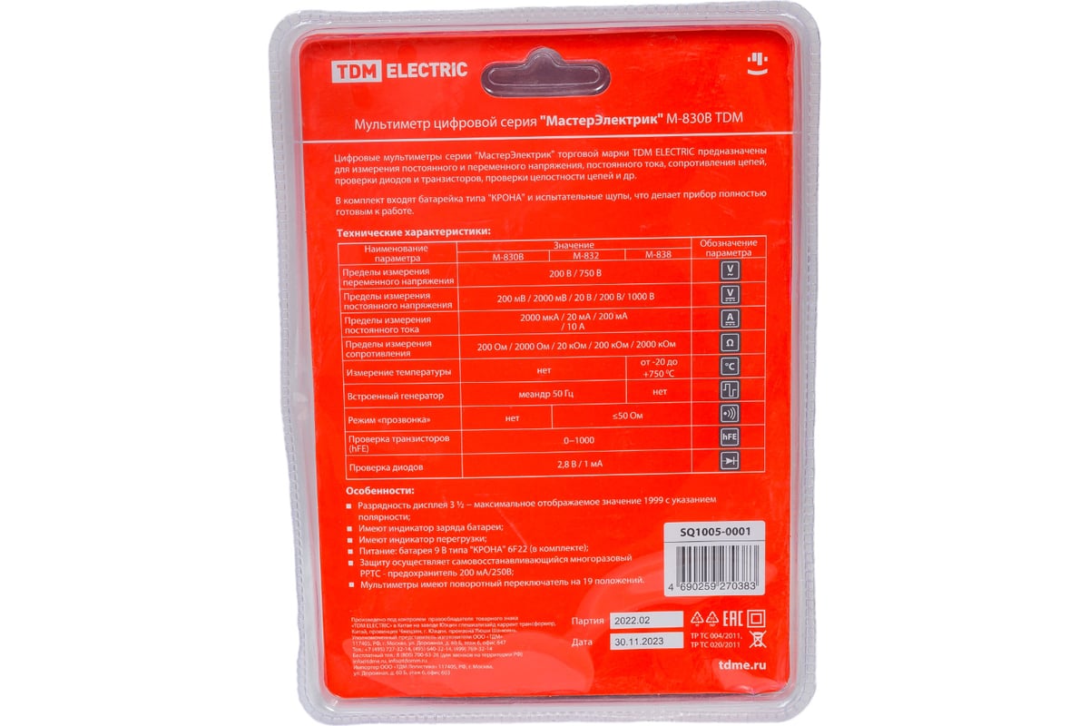 МУЛЬТИМЕТР цифровой 1000В 10А 2МОм M-830B