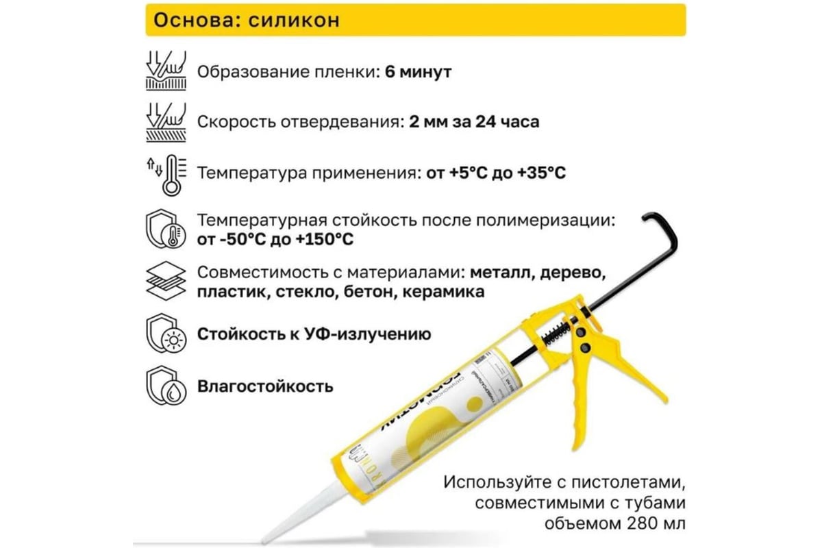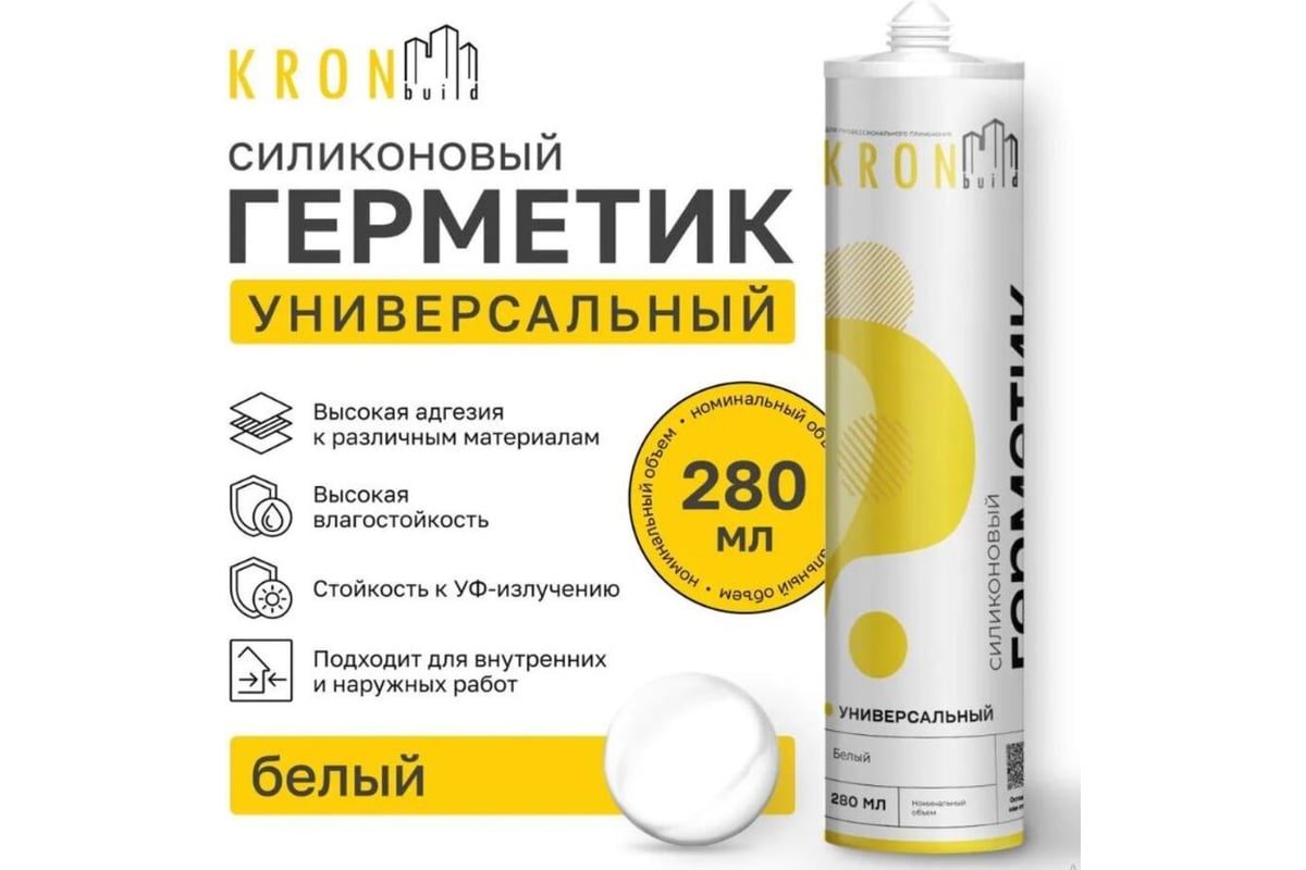 ГЕРМЕТИК силиконовый универсальный 280 мл KRONBUILD цв. белый