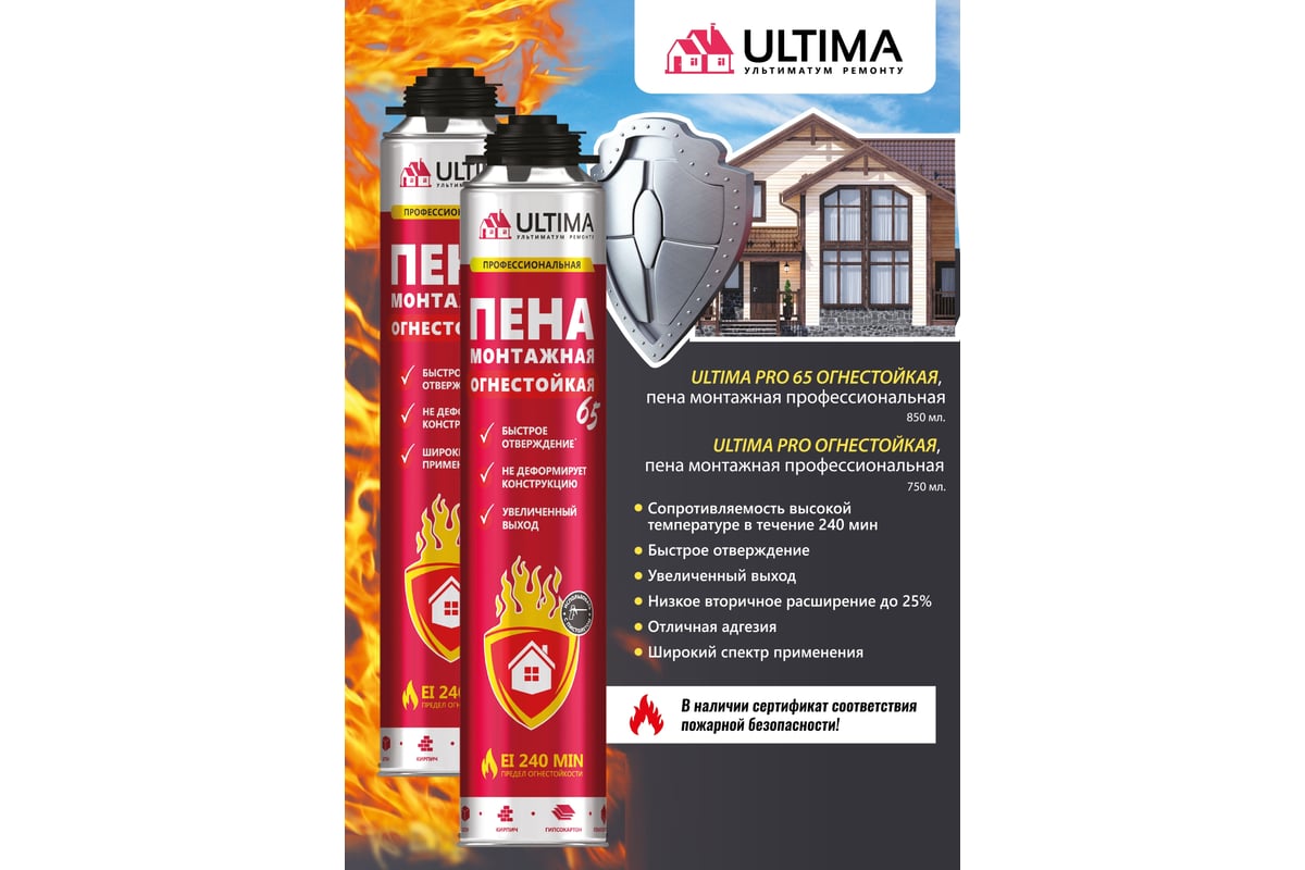 ПЕНА монтажная профессиональная 750 мл огнестойкая Pro ULTIMA