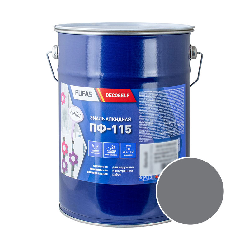 ЭМАЛЬ ПФ-115 алкидная 5 кг 3,7 л Decoself ПУФАС RAL 7042 цв. белый