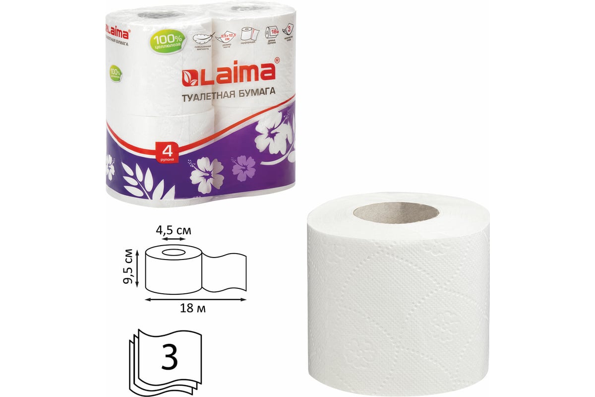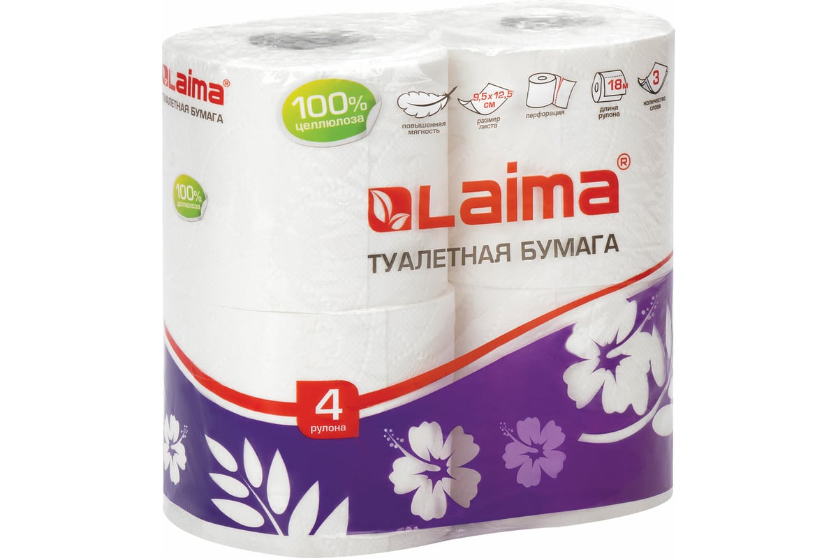 БУМАГА туалетная 3 слоя 17,5 м 4 шт SNOW LAMA цв. белый