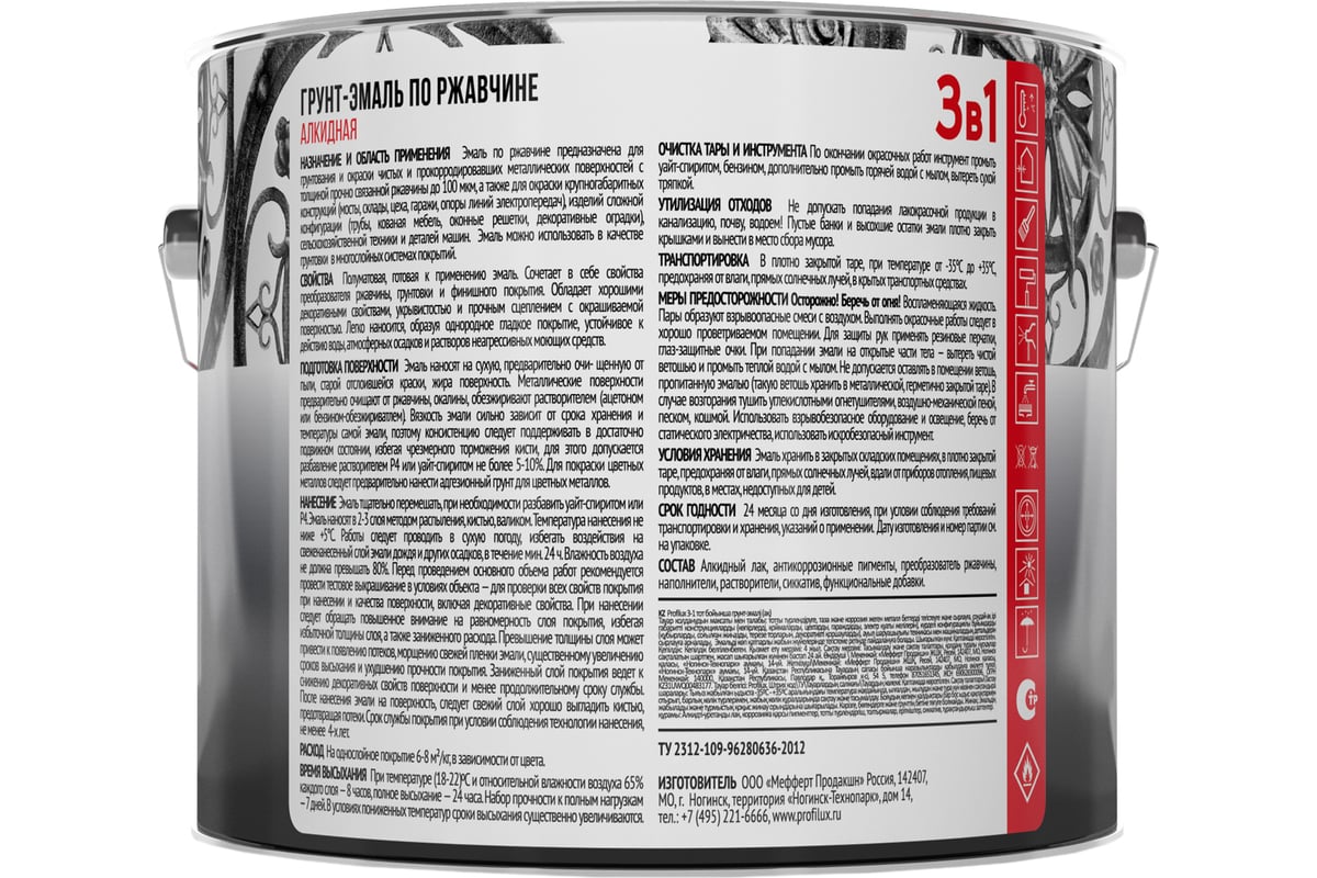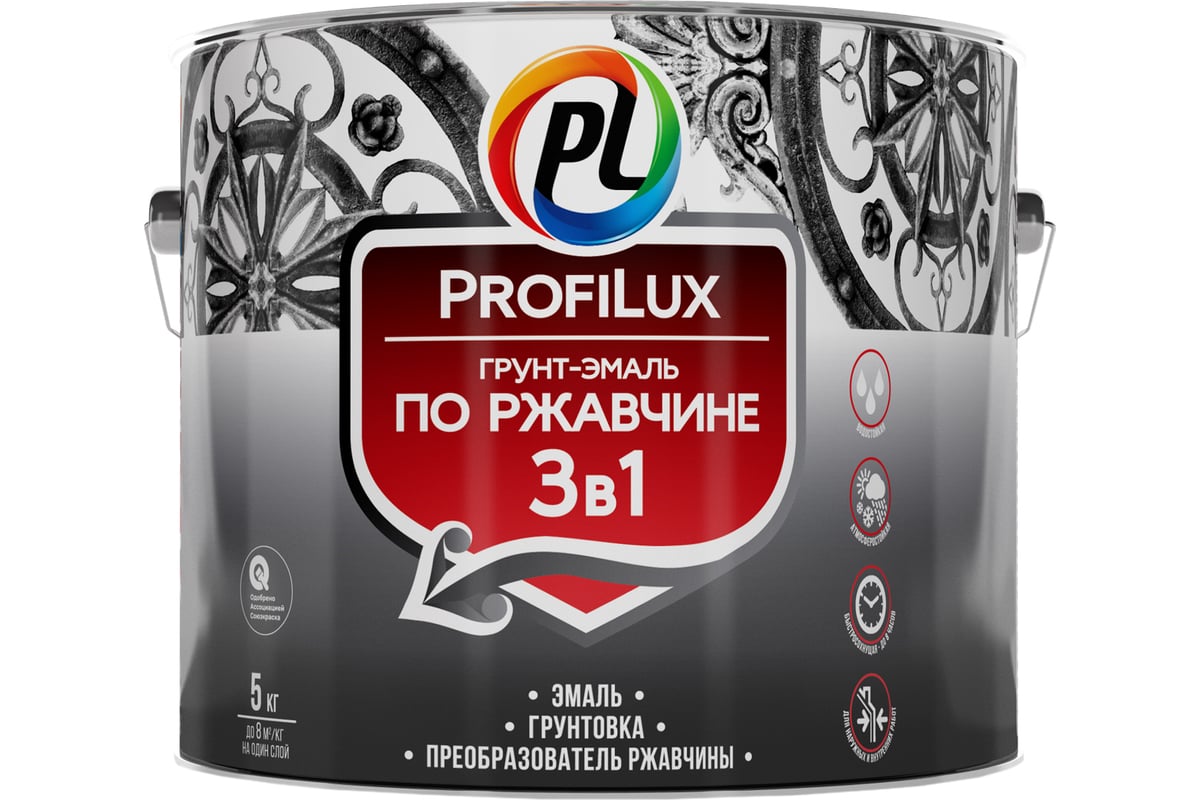 ГРУНТ-ЭМАЛЬ по ржавчине 3 в 1 полуматовая 5 кг SAIVER цв. серый