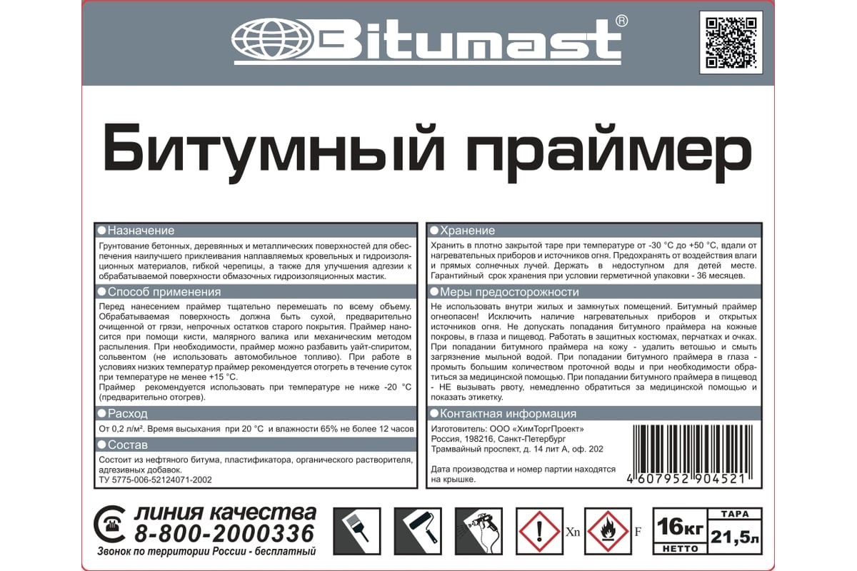 ПРАЙМЕР битумный 21,5 л BITUMAST
